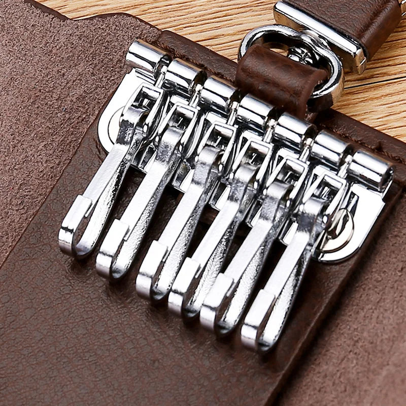 This key holder is perfect for organizing your keys. It features a foldable design and hasp closure, making it easy to carry around.