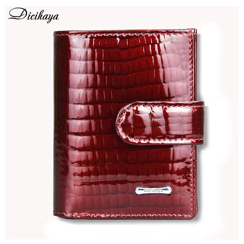 Stay organized and stylish with this real leather female purse. The slim design features a hasp closure and multiple card slots for all your essentials.