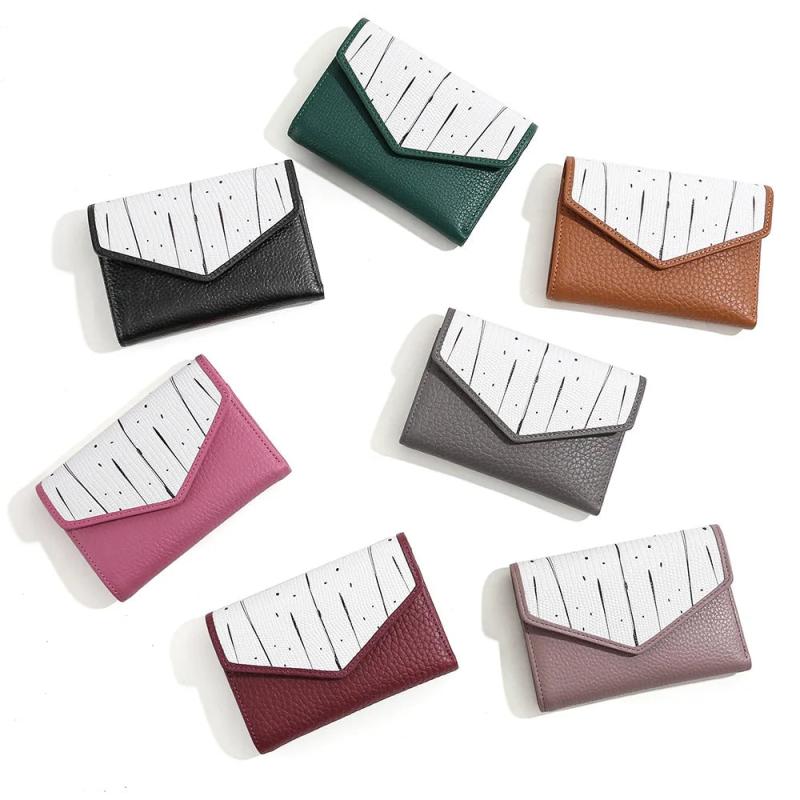 High quality first layer leather women's folded wallet with card slots and coin pocket.