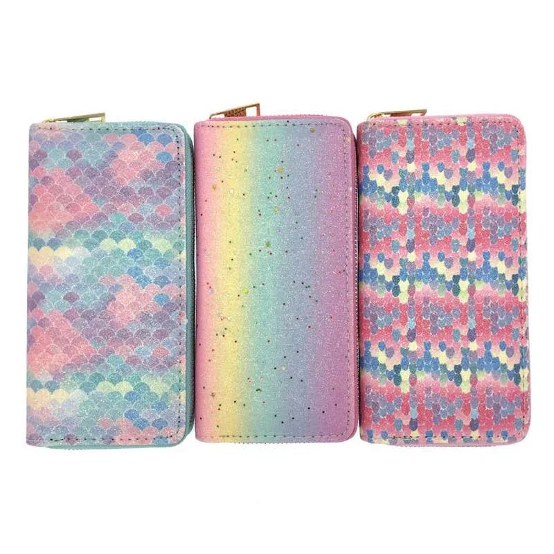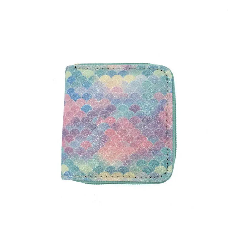 This fashionable wallet features a glitter mermaid pattern print that adds a touch of sparkle to your style. Perfect for keeping your essentials organized and easily accessible on-the-go.