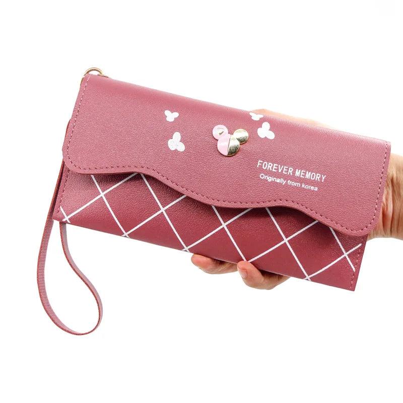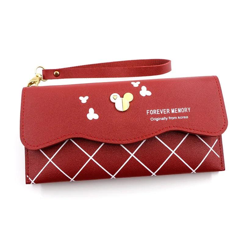 Gray Red Clutch Wallet Soft PU Leather Money Bag