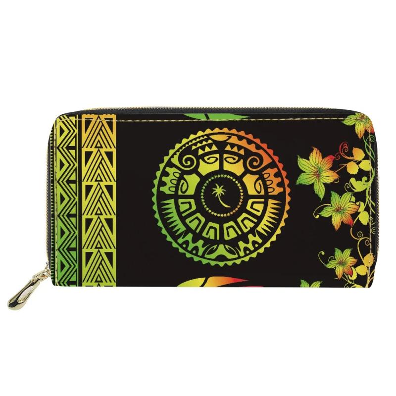 This women's wallet features a beautiful Hawaii flower Polynesian tribal pattern, crafted from high-quality leather. It is a stylish and functional accessory for everyday use.