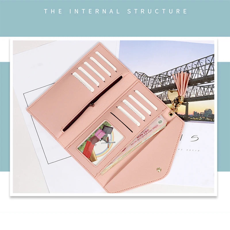 Stay organized in style with this heart-shaped pendant clutch wallet made of soft PU leather. Features multiple compartments for cards, cash, and coins.