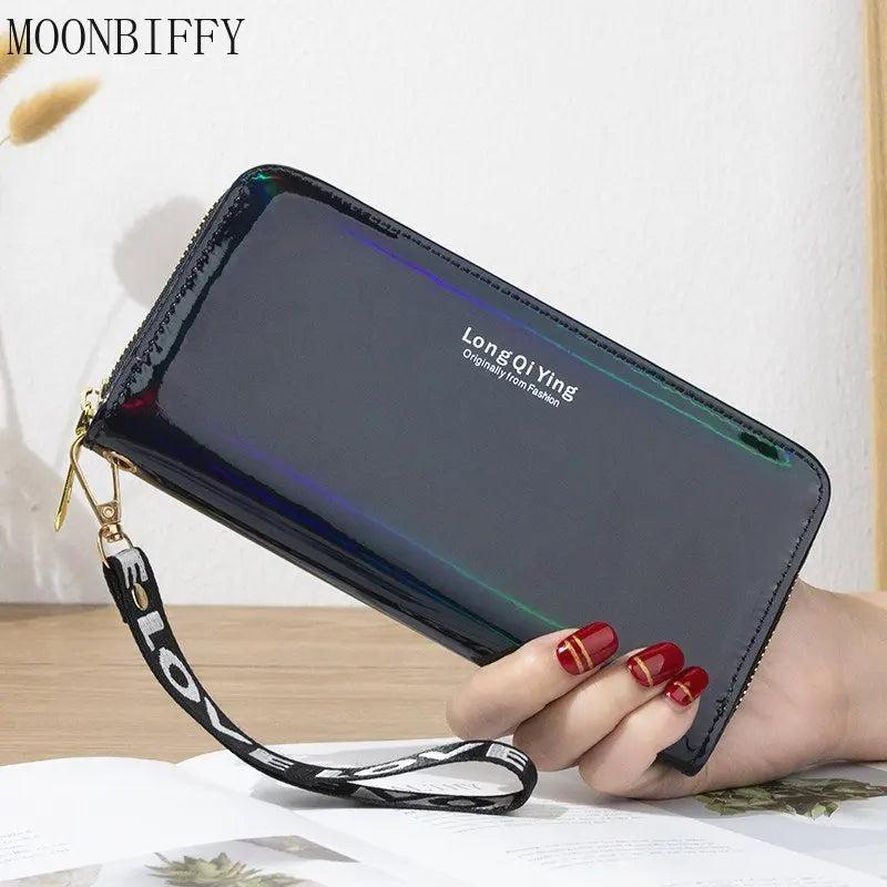 Holographic Long Wallet PU Leather Clutch Zipper Purse Phone Carteras