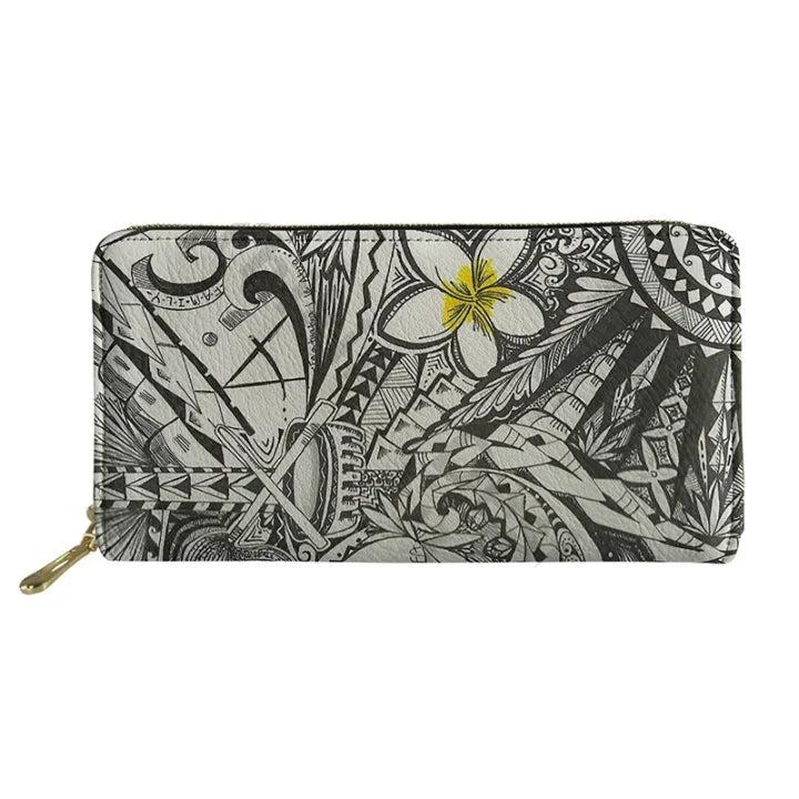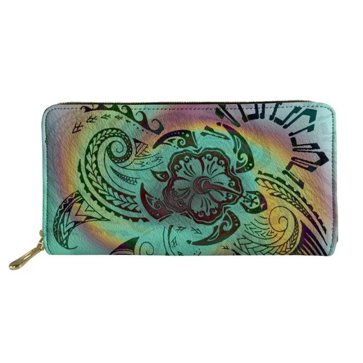 Ladies Leather Wallets Polynesian Pattern Long Purses