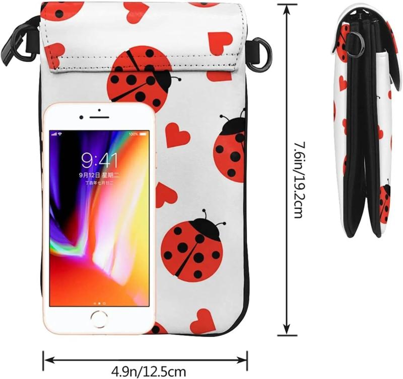 Ladybug Hearts Crossbody Cell Phone Purse Shoulder Bag Small Crossbody Wallet