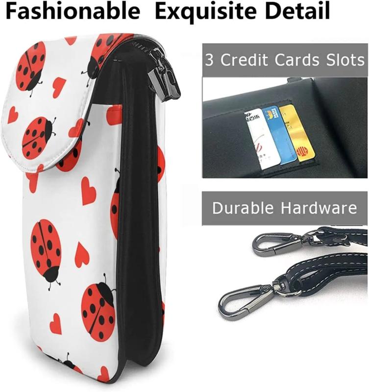 This cute and practical crossbody bag features ladybug and hearts design, ideal for carrying your cell phone and essentials. Made of durable PU material, it is perfect for everyday use.