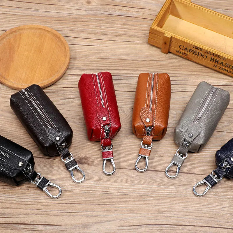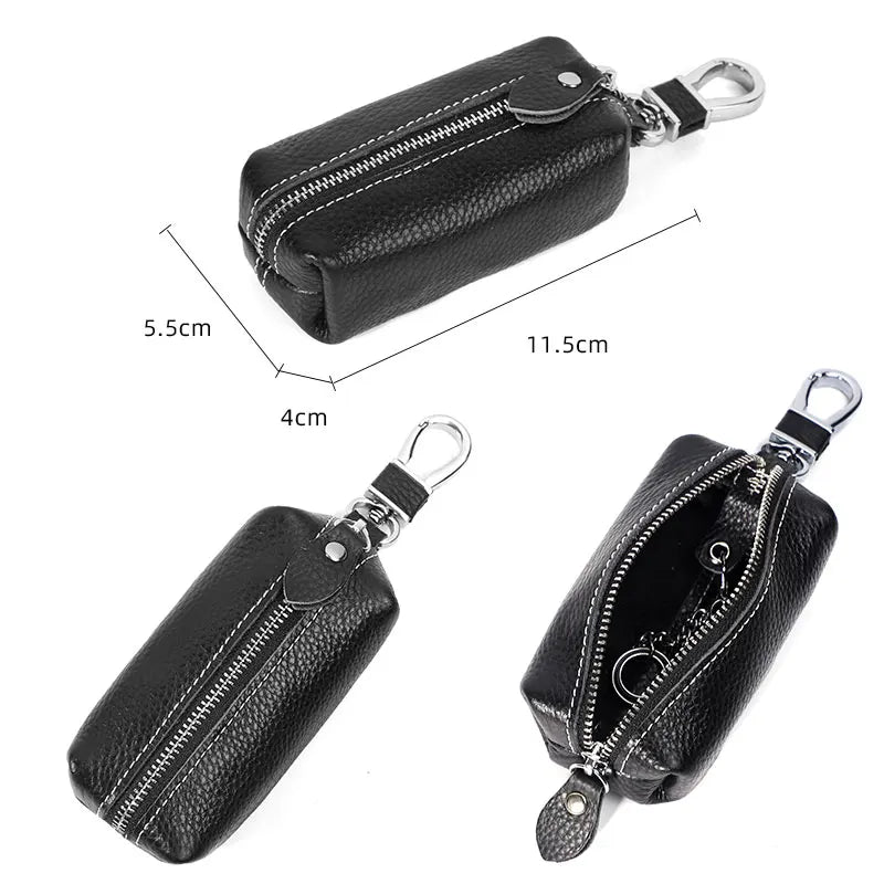 Keep your keys organized in style with this unisex leather key wallet. Perfect for men and women, this key holder features a zipper closure and can hold multiple keys securely.