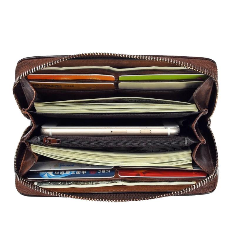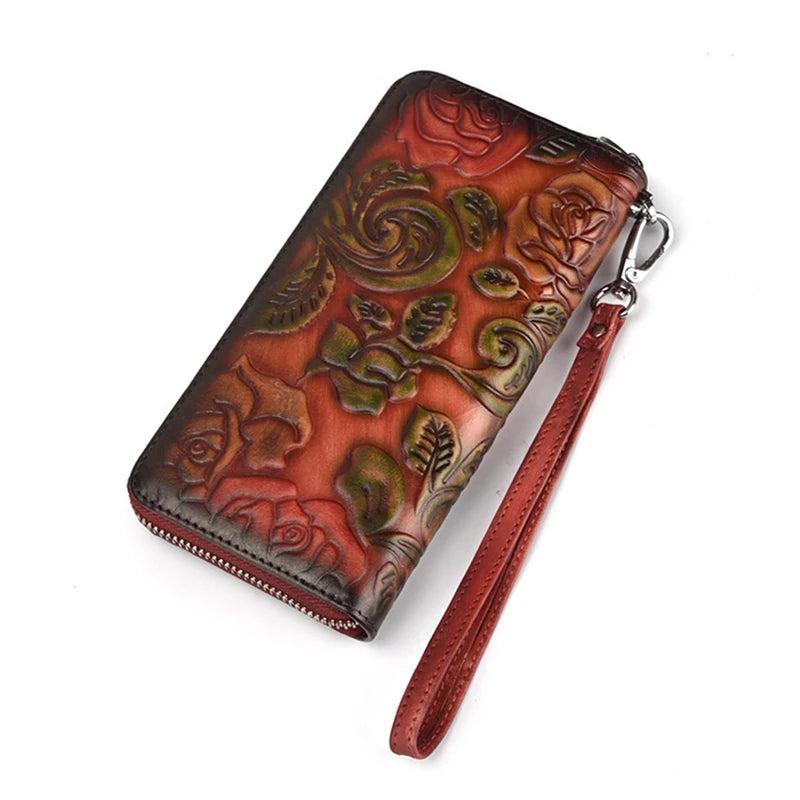 Get this stylish and durable first layer cowhide wallet featuring flowers design. Perfect for both men and women with ample space for mobile phones and other essentials.