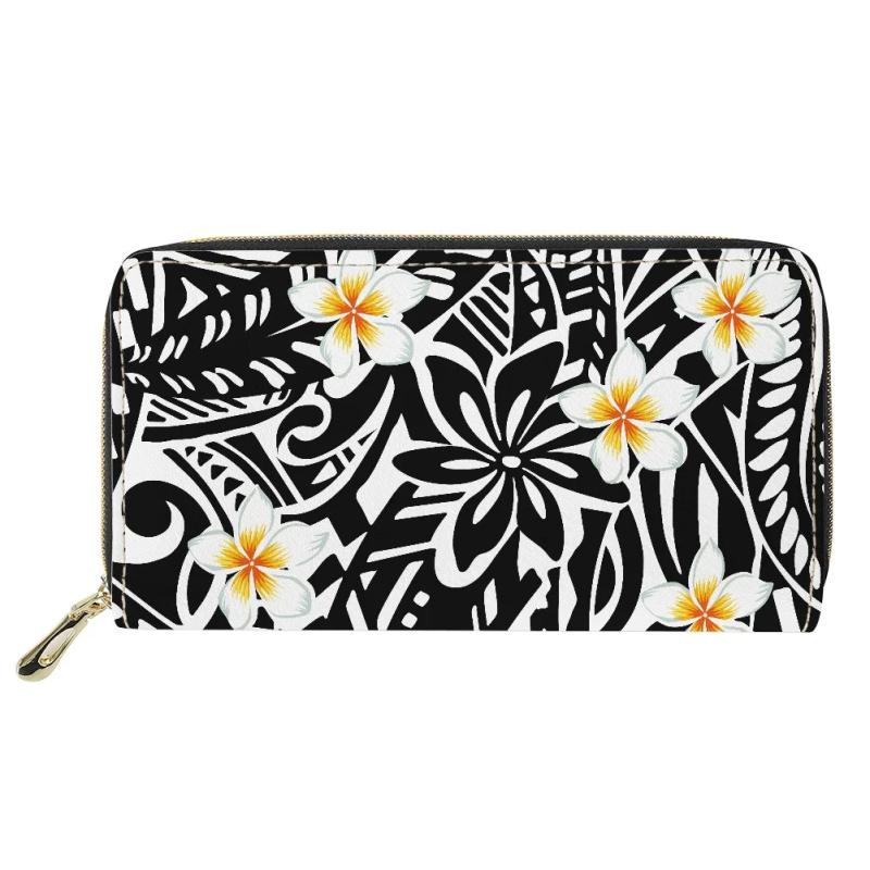 This women's wallet features a beautiful Hawaii flower Polynesian tribal pattern, crafted from high-quality leather. It is the perfect mix of style and functionality.