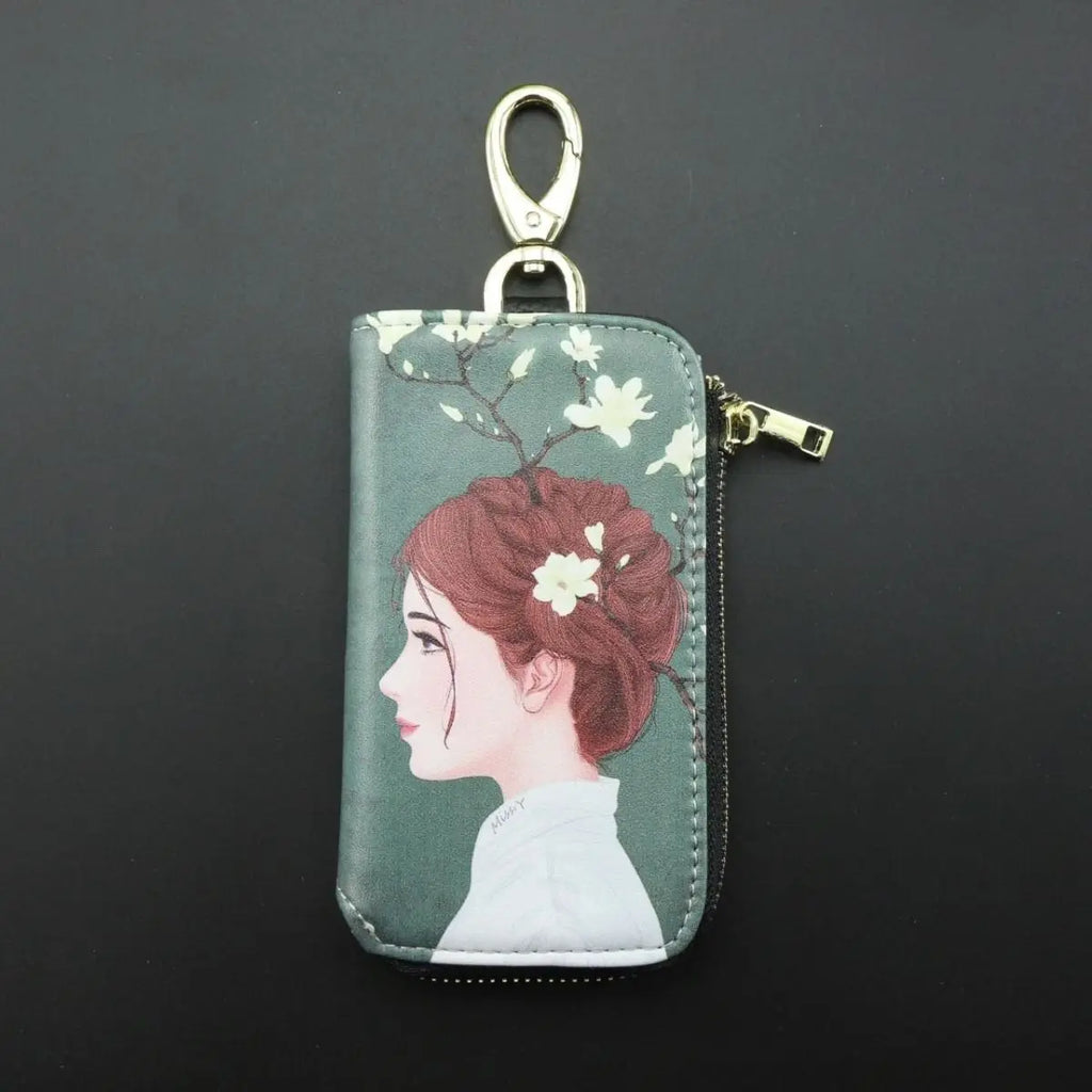 Keep your keys organized and secure with this leather key wallet featuring a zipper closure. Suitable for both men and women.