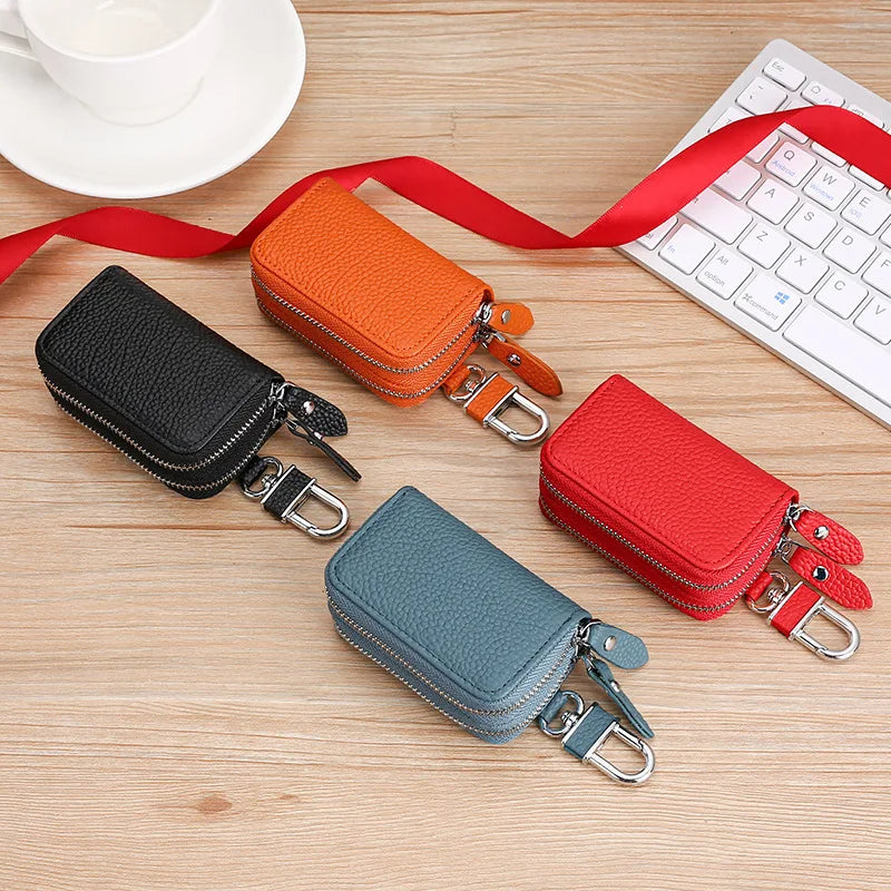 This key wallet keychain is a stylish and practical accessory to keep all your keys organized. It features a zipper closure and can hold keys, cards, and coins securely.