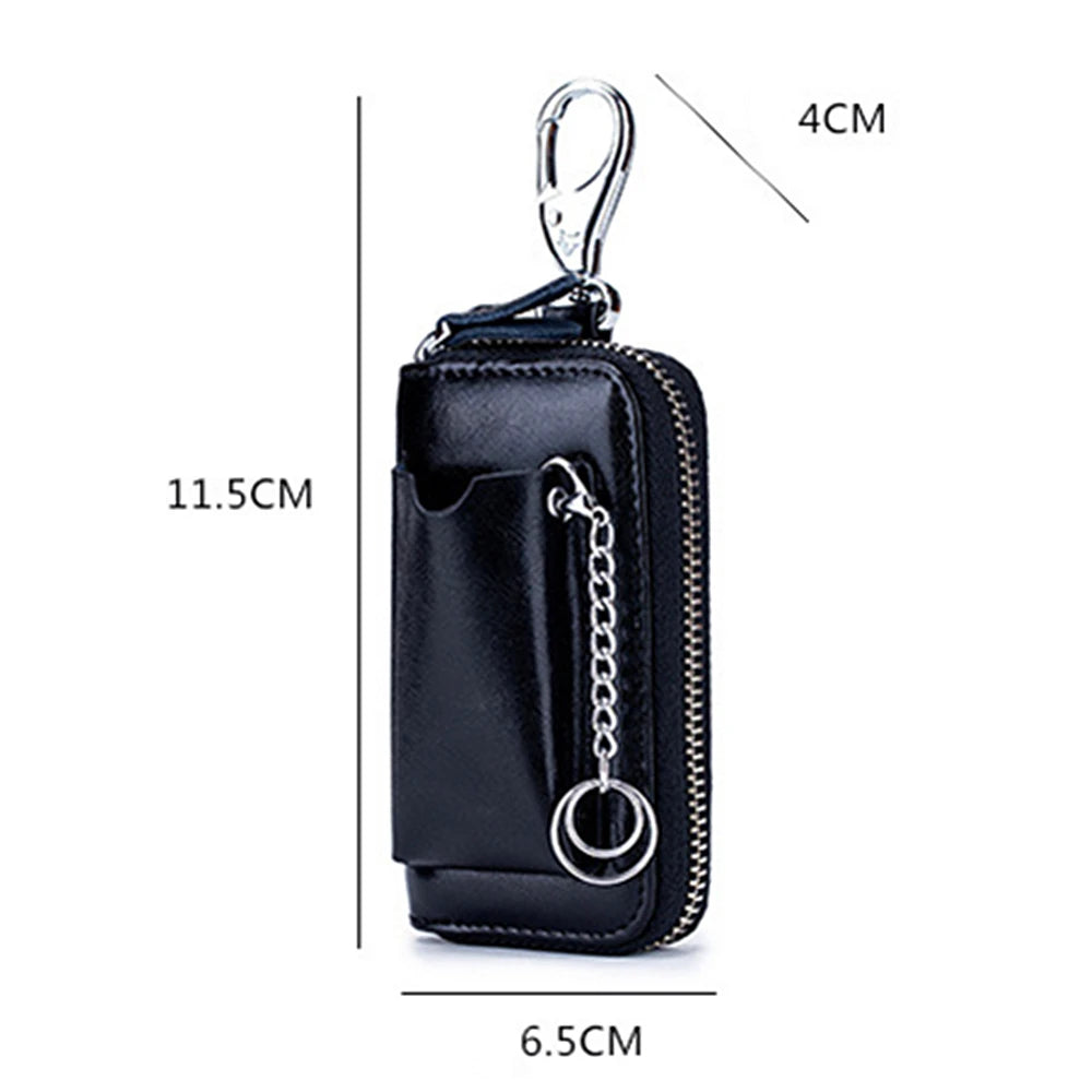 This leather key wallet is perfect for men and women. It can hold car keys, house keys, and other small essentials. The cowhide material gives it a luxurious look and feel. The multifunctional design includes a zipper closure to keep your keys secure.