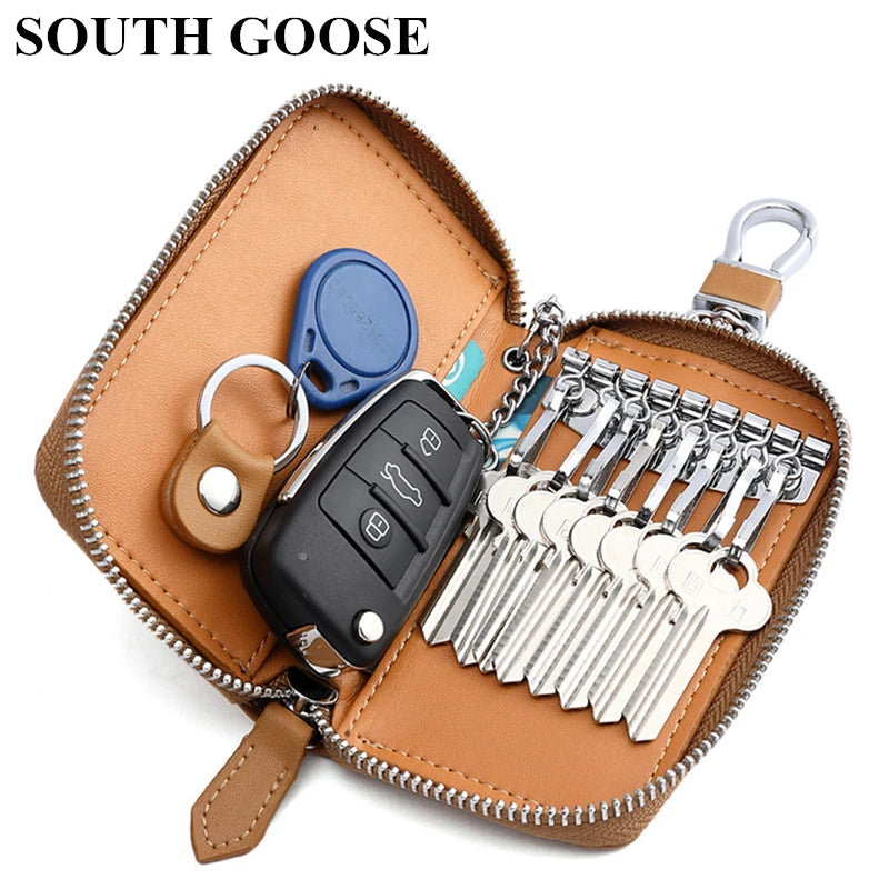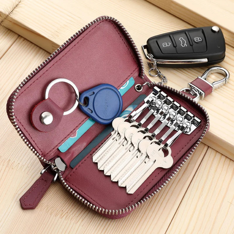 This unisex key wallet is perfect for organizing keys and other small items. It is made of quality leather and has multiple compartments for easy storage. The smart housekeeper keychain design is ideal for both men and women.