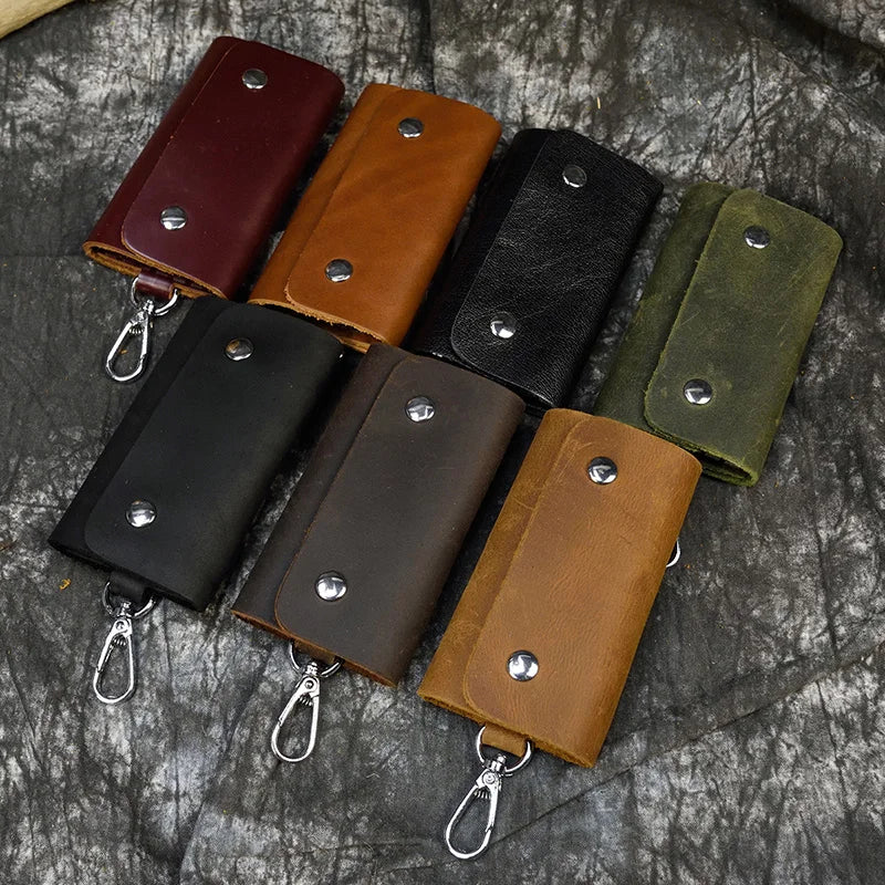 This leather keycase is perfect for organizing your keys in style, made of high-quality crazy horse leather. Suitable for both men and women.