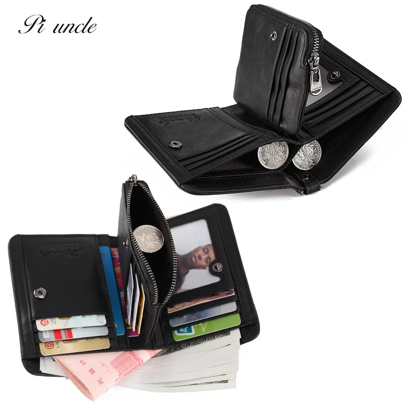 Leather Men's Short Wallet With Coins Pocket Money Purse