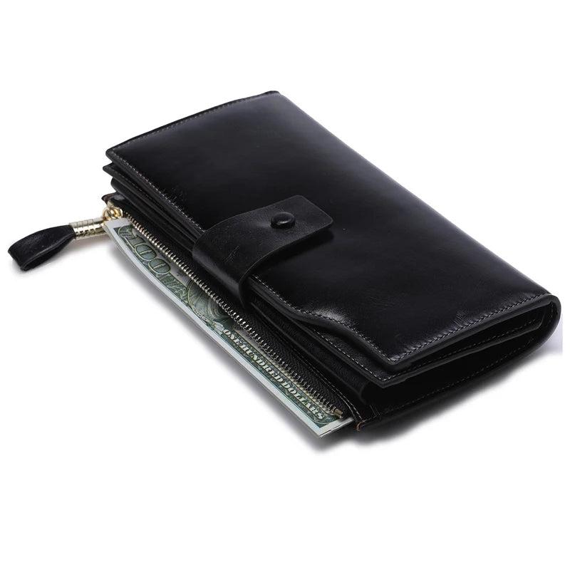 This high-quality leather wallet is designed for women with RFID protection. It features a hasp zipper closure and ample space for cards, cash, and coins. Perfect for daily use.