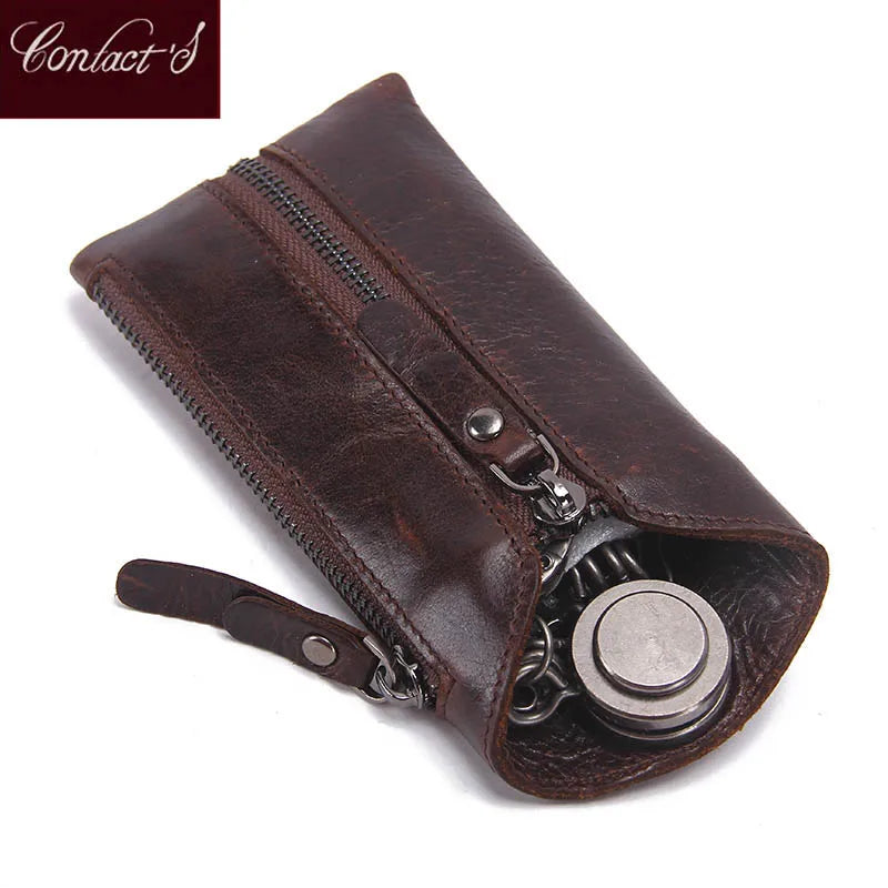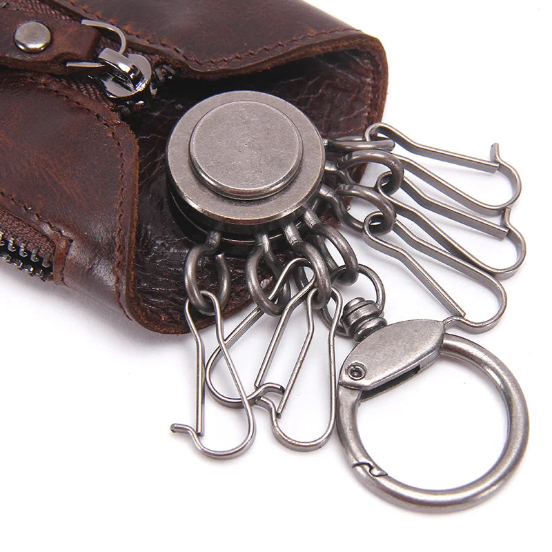 Keep your keys organized and secure with this stylish leather key wallet featuring a zipper closure. Perfect for storing keys and small essentials.