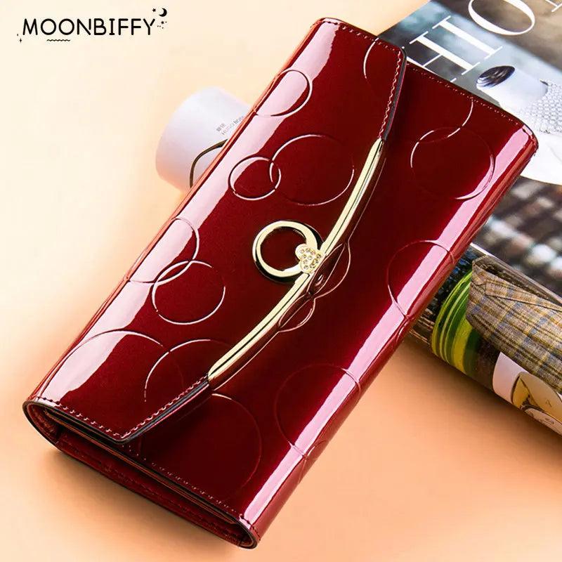 Stay organized in style with this leather women wallet featuring a diamond hasp design. It offers three folds and a long clutch for convenience.