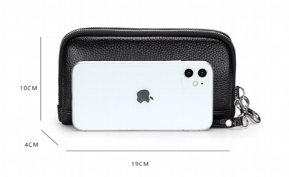 Stay stylish and organized with this elegant leather wallet for women. It features a long zipper closure and multiple compartments for cards, cash and phone.