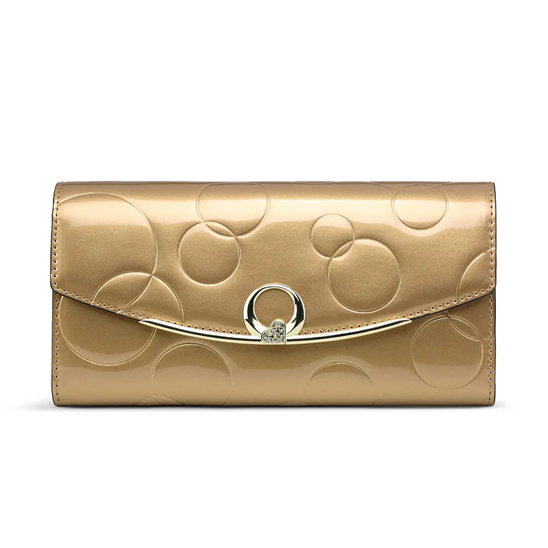 Leather Women's Diamond Decoration Long Wallet Clutch Ladies with Rfid Blocking