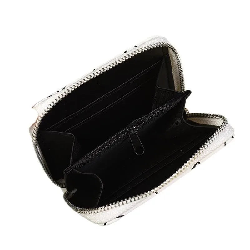 Stylish and practical wallet with a wrist strap, perfect for carrying your essentials. Features a zipper closure and diamond design.