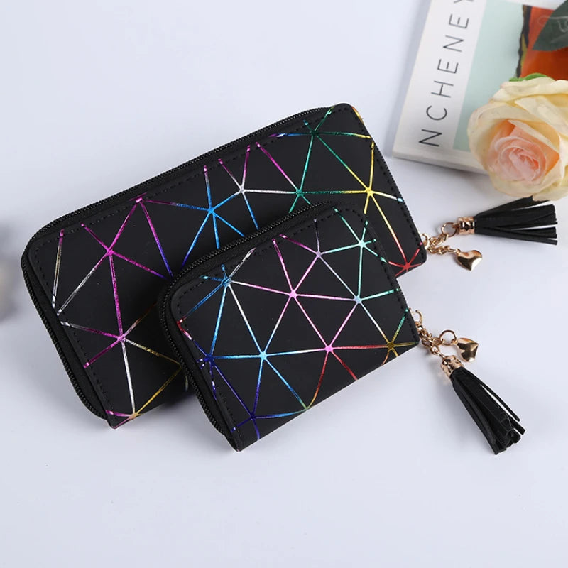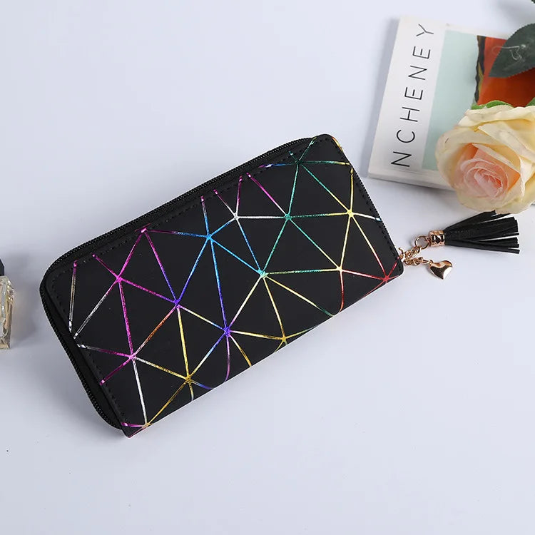 Stylish and compact wallet made of high-quality leather, featuring a tassel zipper and diamond embellishments. Perfect for storing your mobile phone and essential cards.