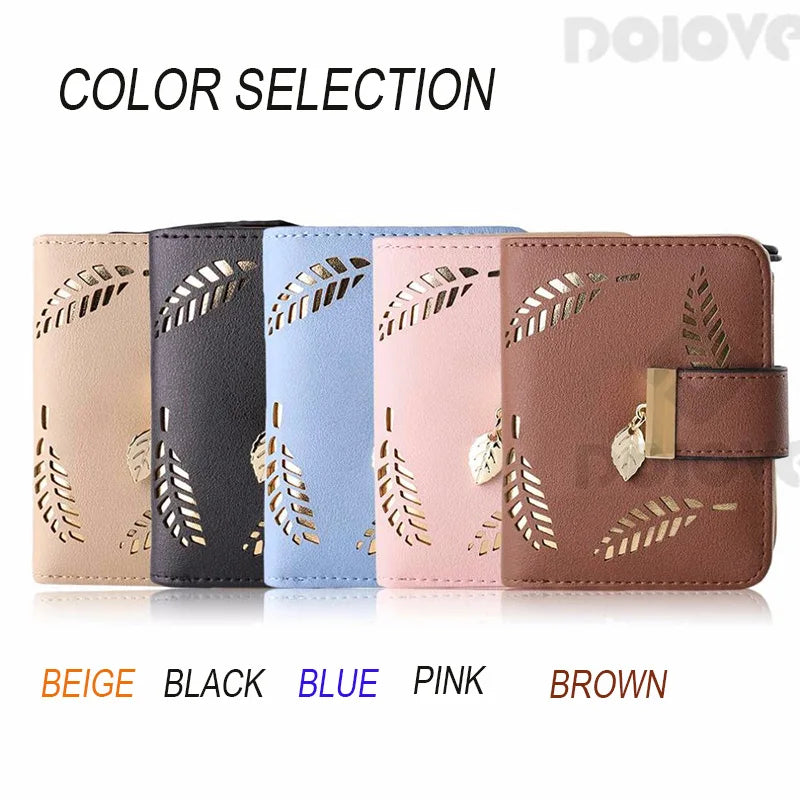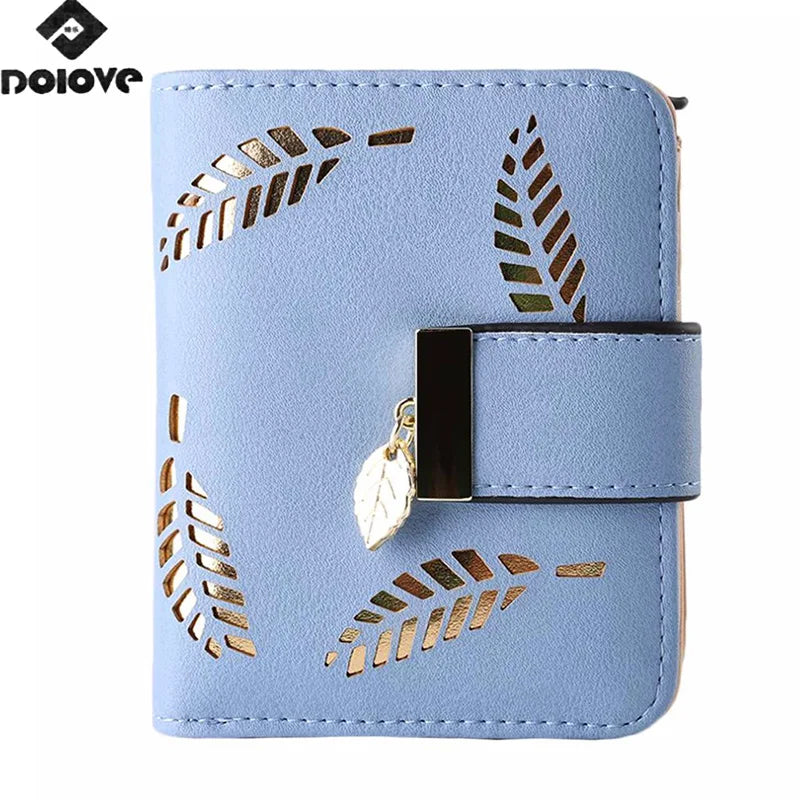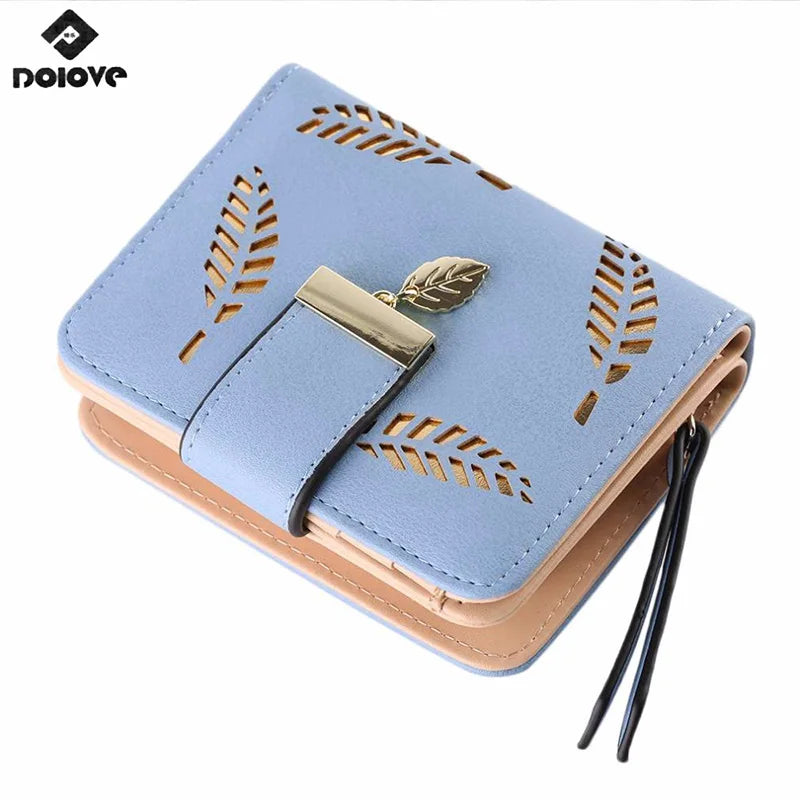 Leaves Hollow Pattern Women Purse Short Zipper Buckle Wallet