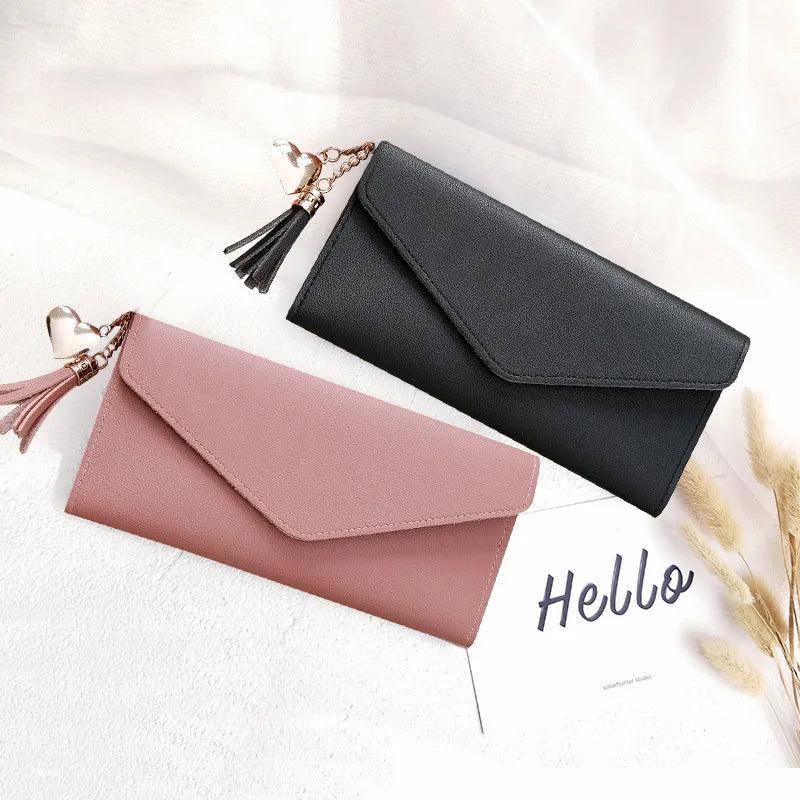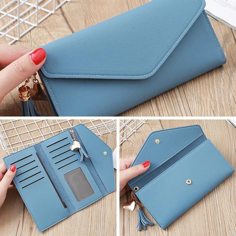 Stay stylish and organized with this long version wallet featuring a tassel buckle design. Perfect for students and daily use.