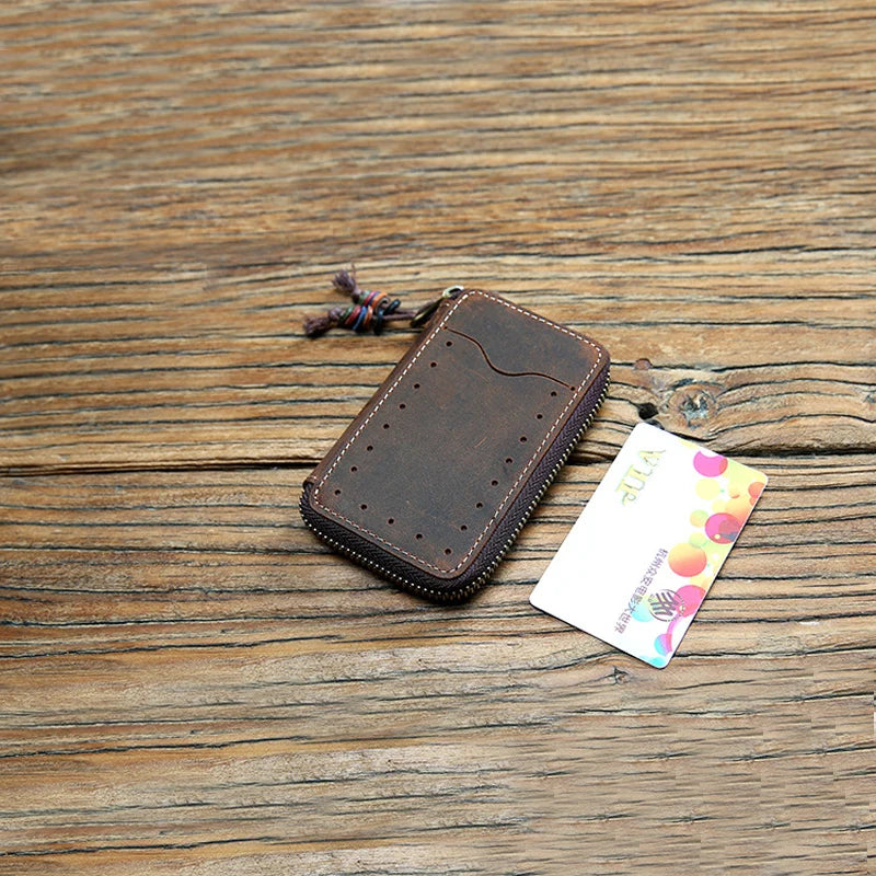 Keep your keys organized and secure with this high-quality leather key holder. Perfect for both men and women, this key wallet features a zip closure and can hold multiple keys.