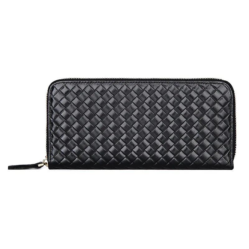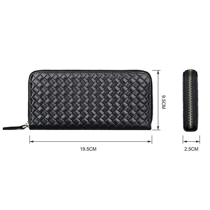 Stay organized and stylish with this genuine cow leather wallet featuring a woven design. Perfect for business and casual use.