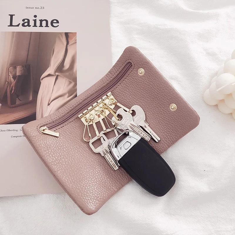 Mini Key Holder Bag Multifunctional Soft Cow Leather Wallet