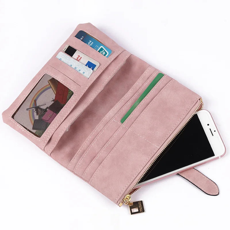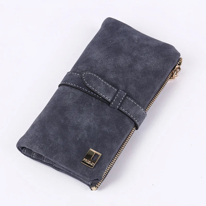 Nubuck Leather Zipper Wallet Women's Long Purse Clutch Phone Pocket