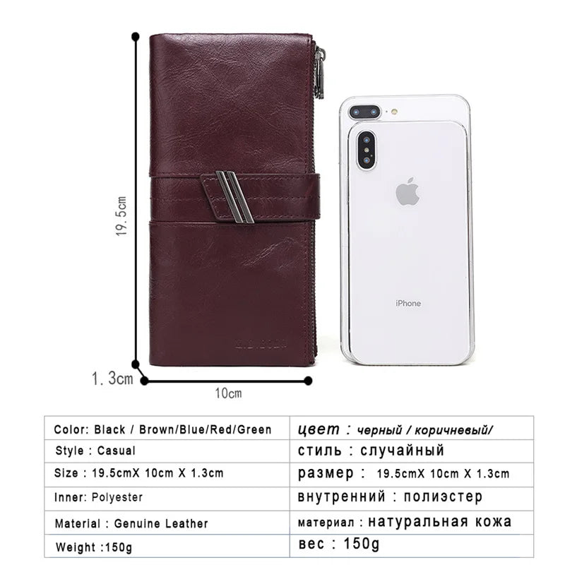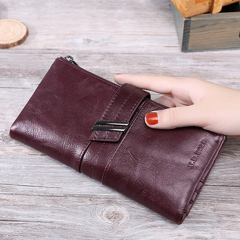 Oil Wax Leather Ladies Wallet Double Zipper Coin Purse Long Clutch Bag