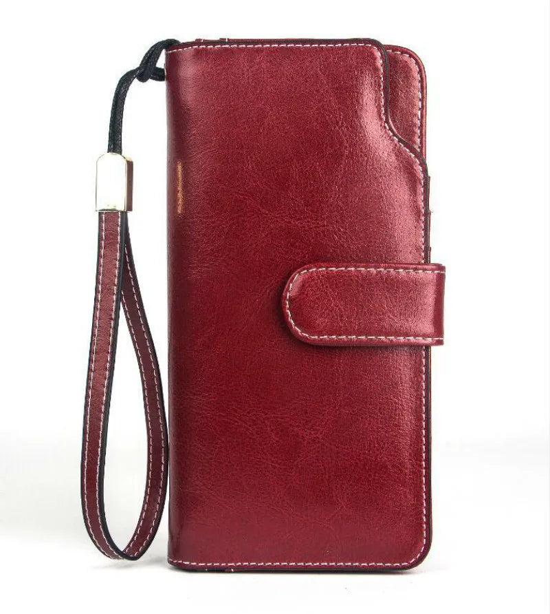 Oil Wax Leather Women Wallet Long Purse with Coin Pocket