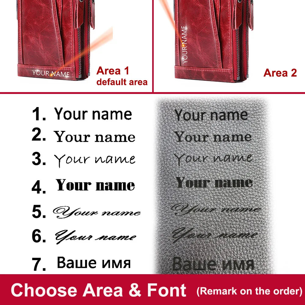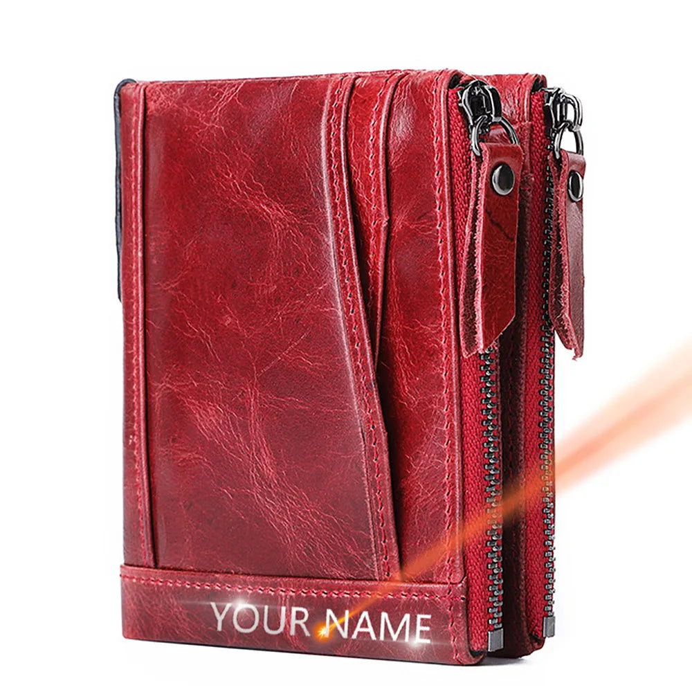 Personalized Women Leather Wallet with Double Zipper