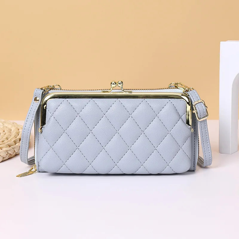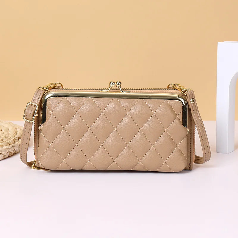 Stay stylish and organized with this plaid leather wallet that doubles as a small clutch bag. Featuring a zipper closure, hasp, and a strap for easy carrying, it's perfect for holding your phone and essentials.