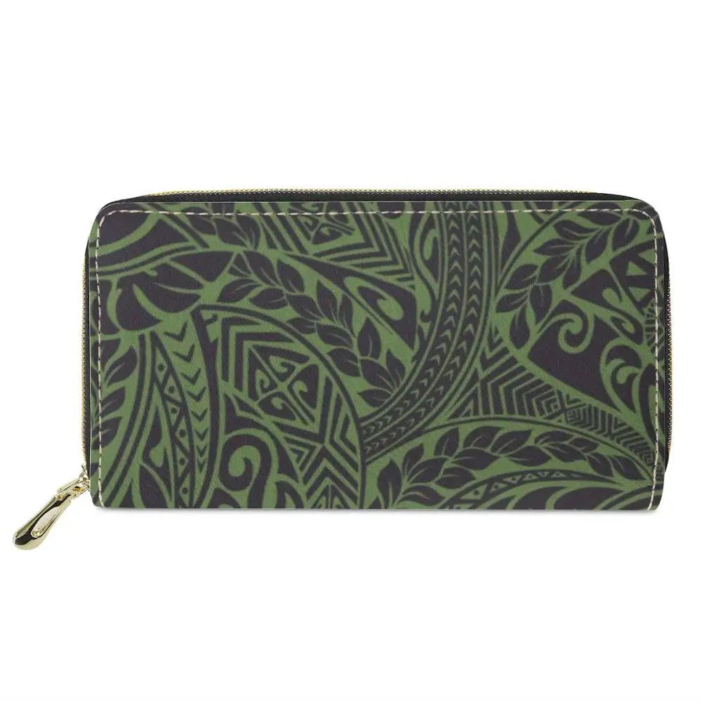 Polynesian Tribal 3D Printed Zipper Purse Women Long Clutch Wallet