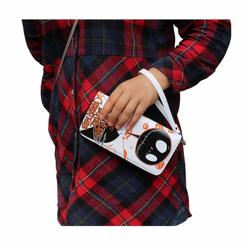 Stay stylish with this unisex wallet featuring pumpkin lantern and skull design. The long female wallet is made of durable PU leather, perfect for keeping your essentials secure.