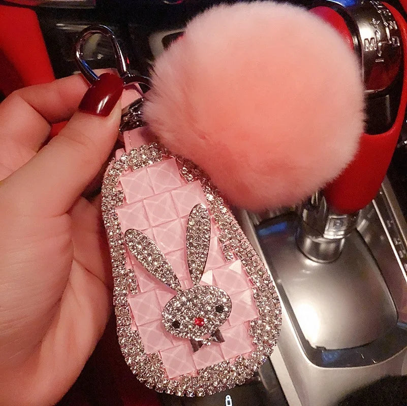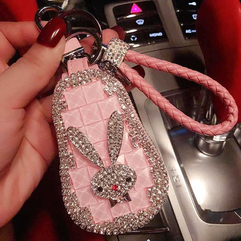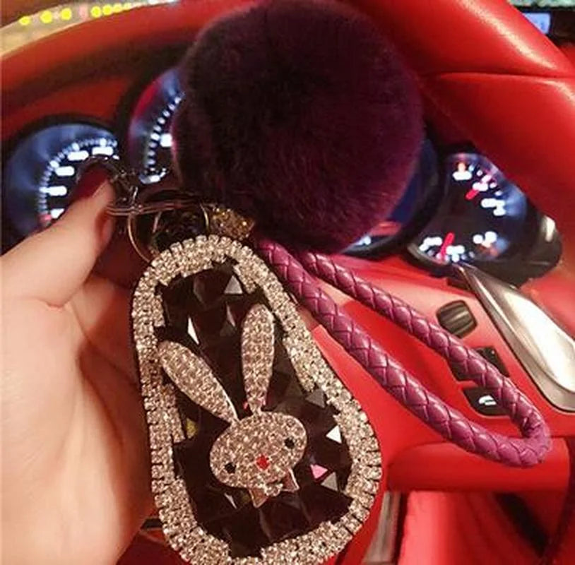 Keep your keys organized in style with this PU leather key holder featuring a diamond rabbit design. The zipper closure ensures secure storage at home or in the car.