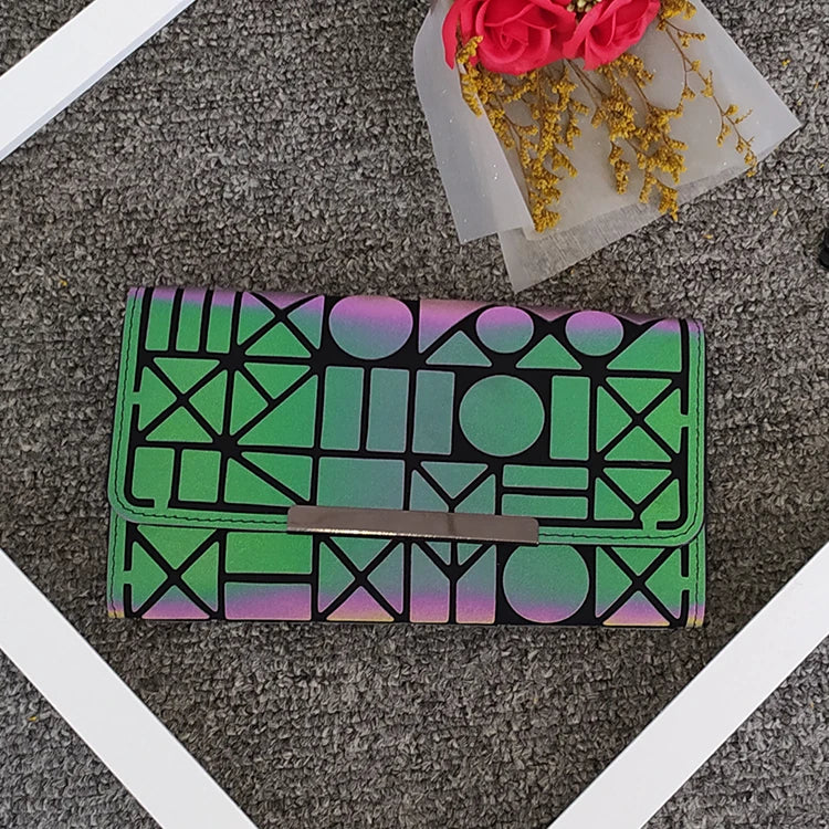 Stay on-trend with this luminous geometric women's wallet that is both stylish and practical. The reflective design adds a touch of flair to your everyday essentials.