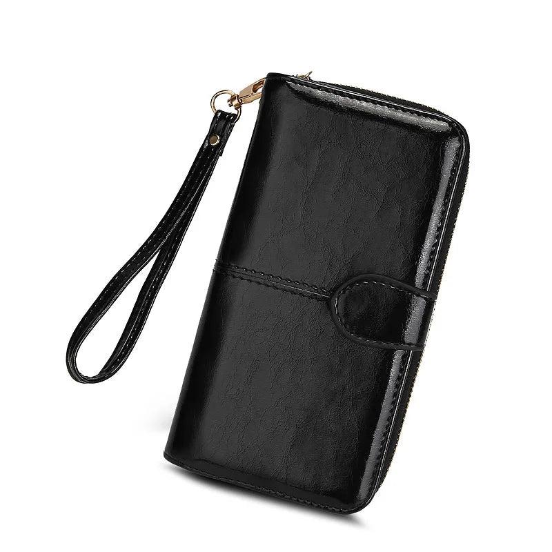 Retro Zipper Oil Wax Leather Clutch Bag Women's Long Wallet