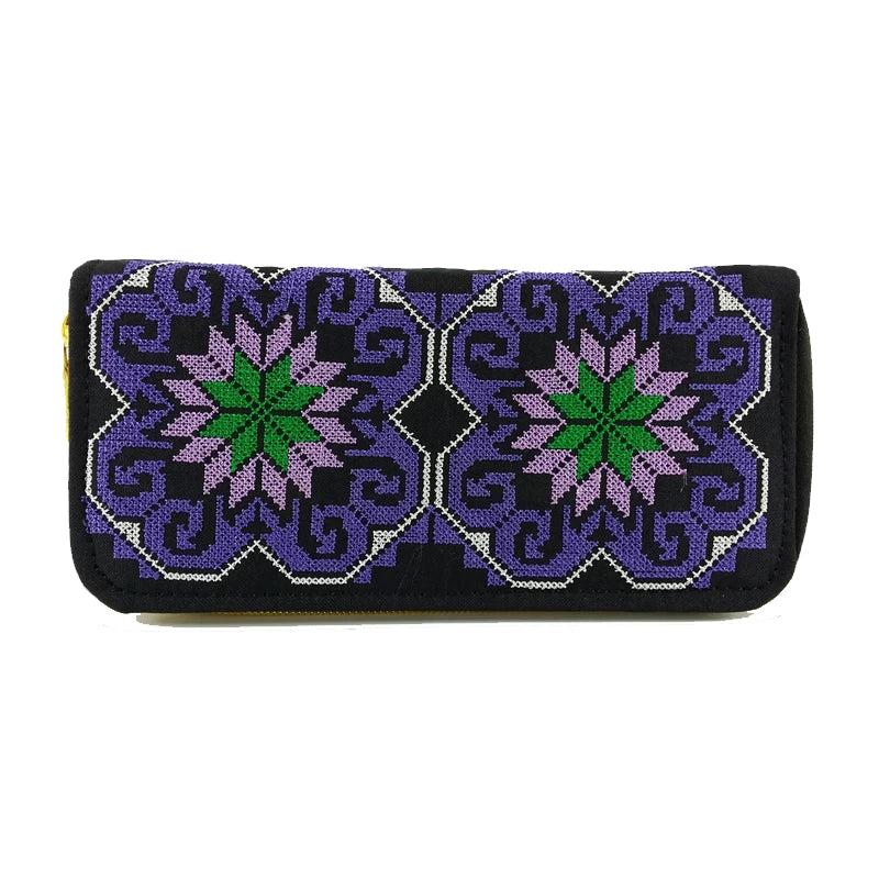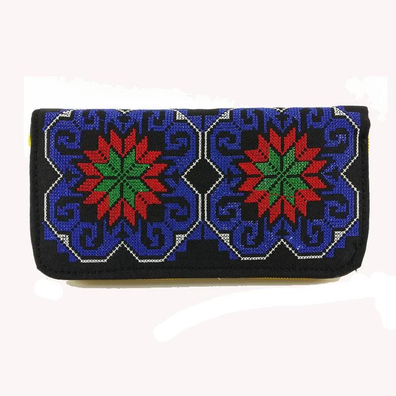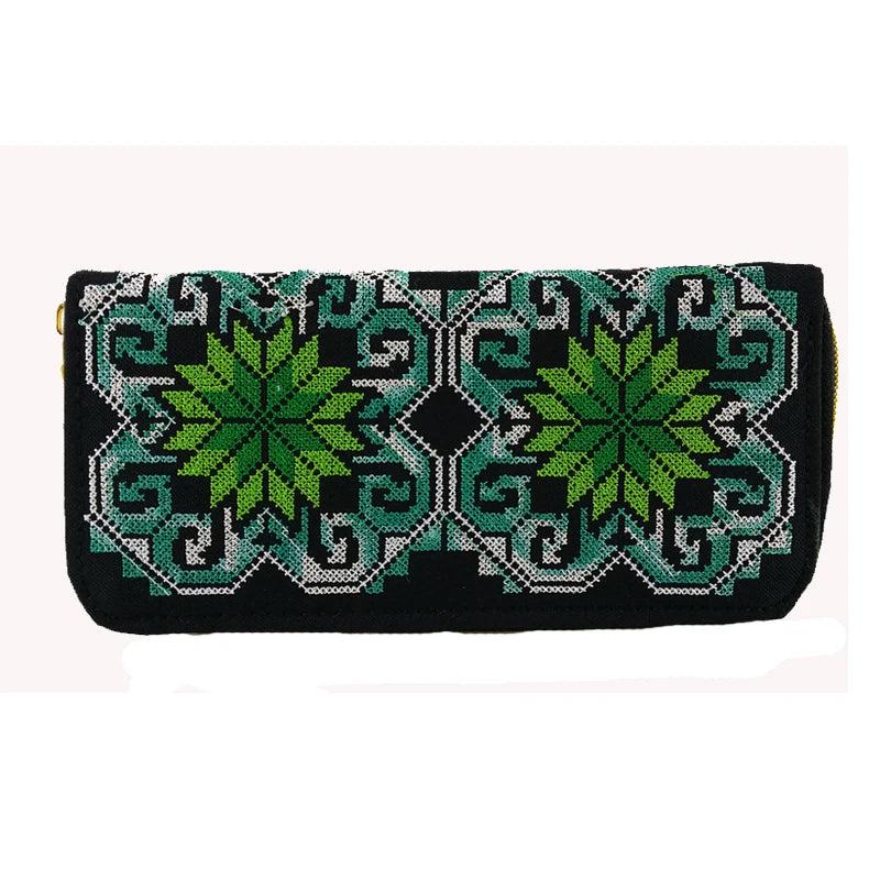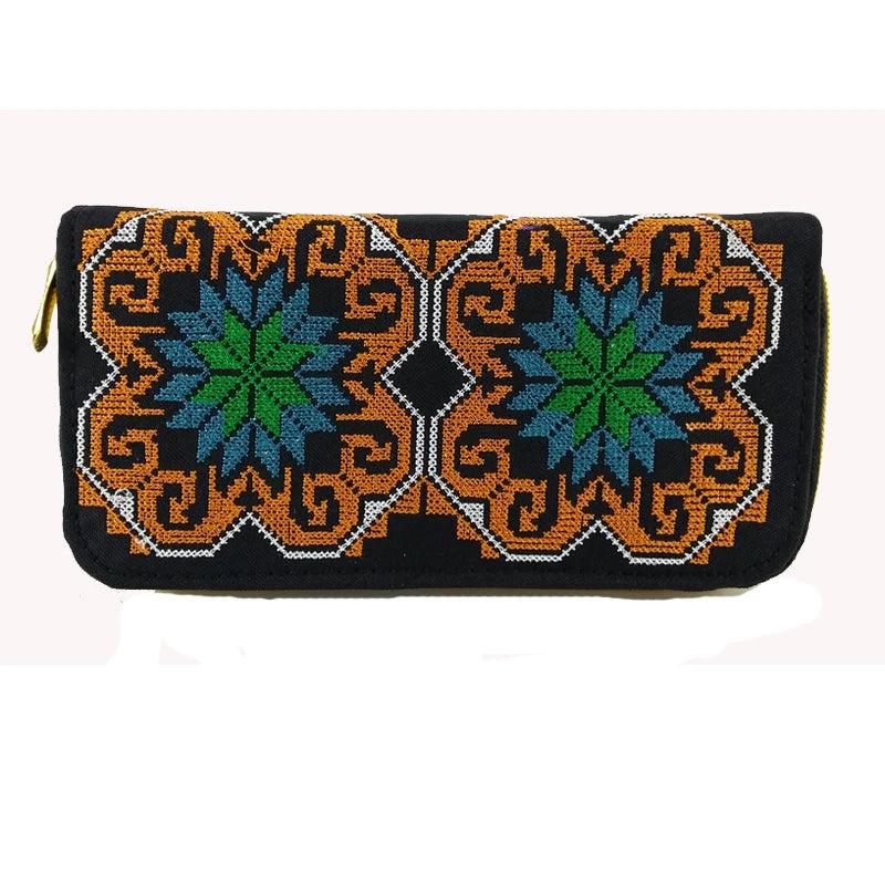 Retro Zipper Wallets Women Embroidered Flower Purse Cross Wallet