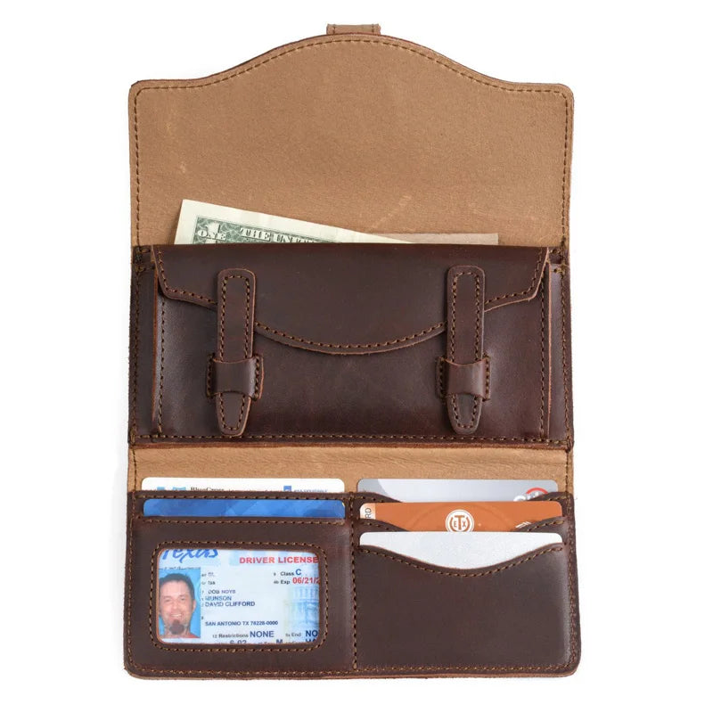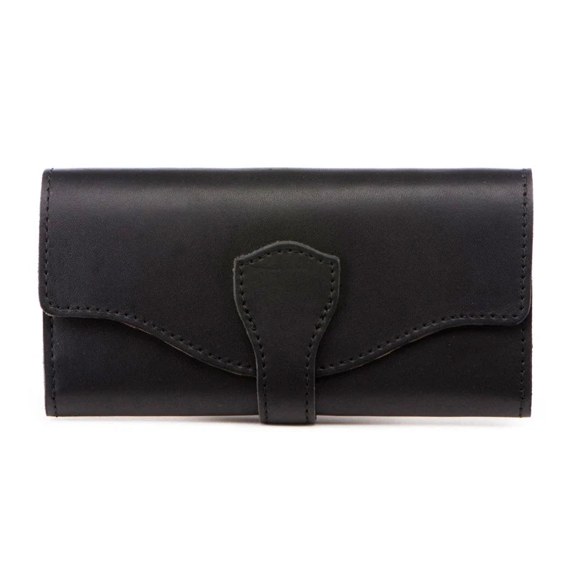 Stay stylish and secure with this RFID-blocking leather wallet. It features a big travel buckle purse design perfect for ladies. The long phone compartment adds convenience.