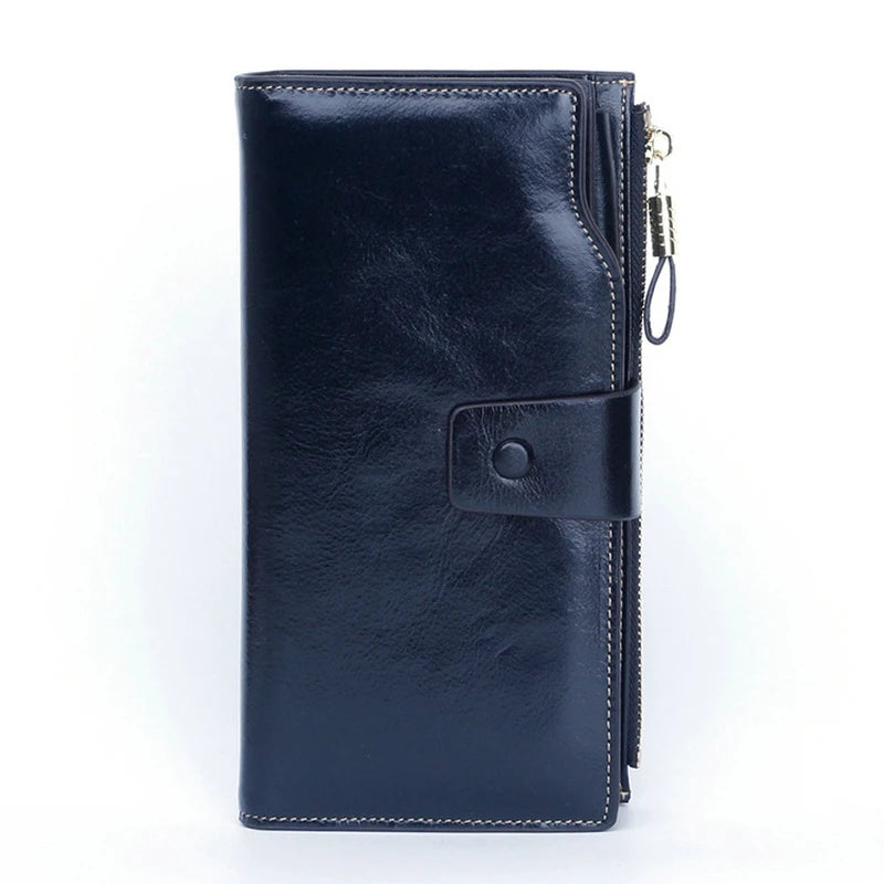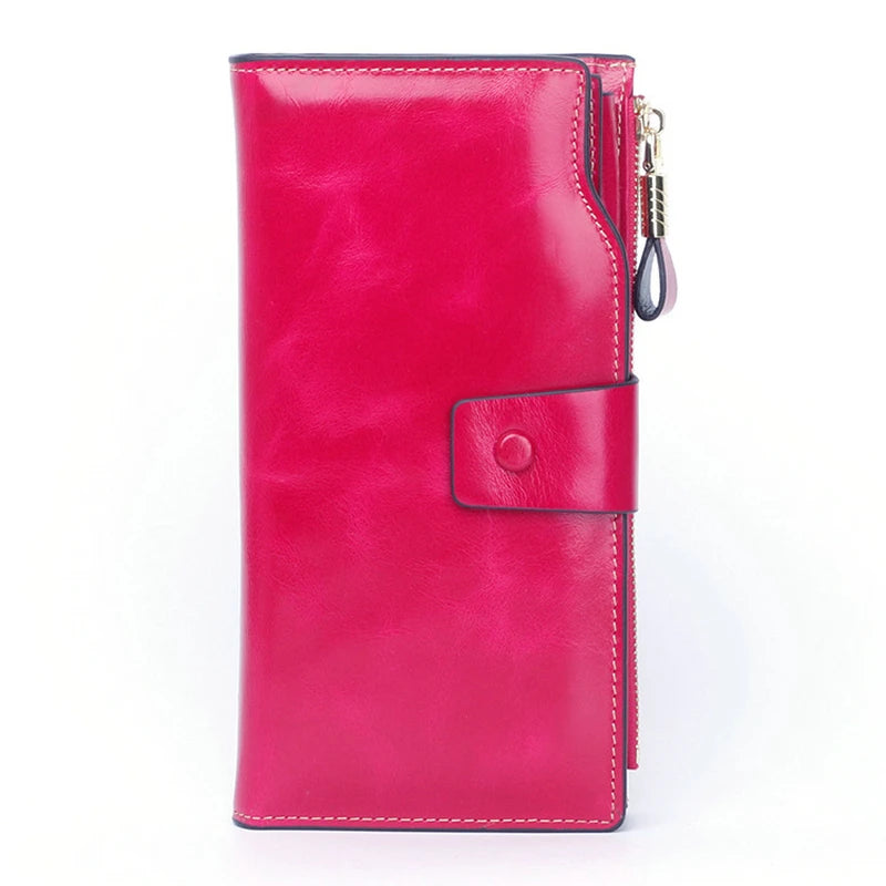 RFID Blocking Long Wallet Women Oil Wax Leather Coin Purse