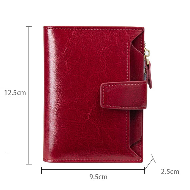 Keep your personal information safe with this RFID blocking leather women wallet. Made of oil wax leather, this short lady leather purse is perfect for carrying your coins and cards.