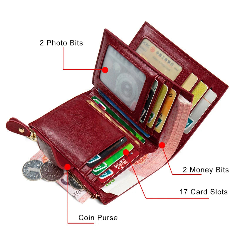 RFID Blocking Women Wallet Lady Leather Purse Coin Purse