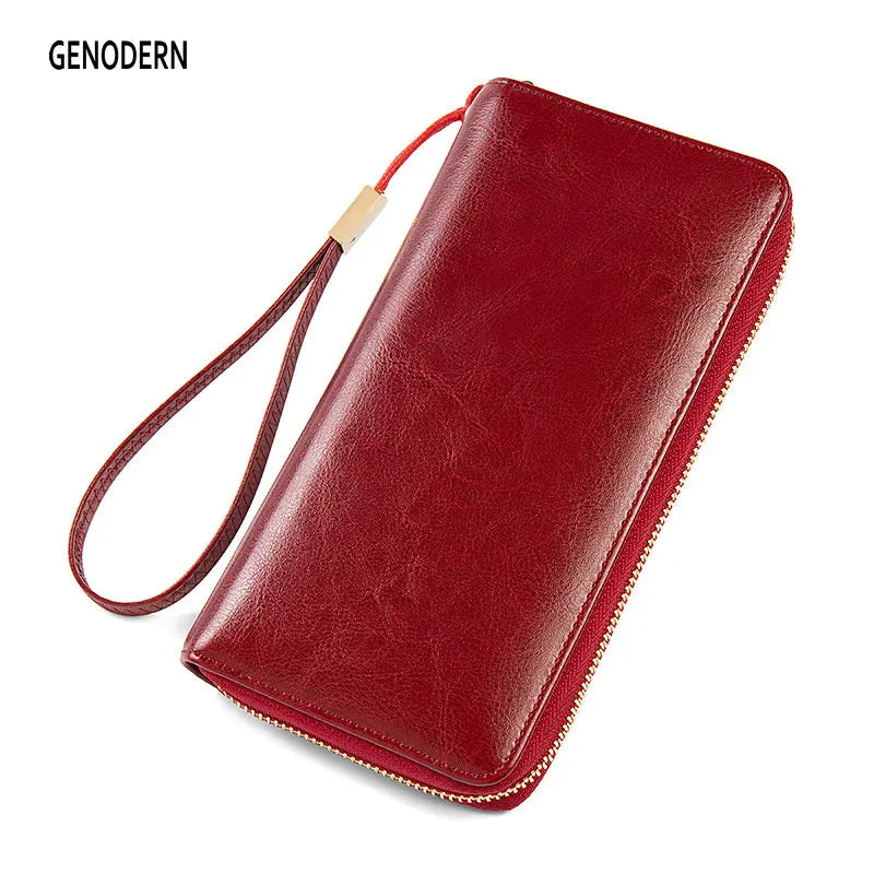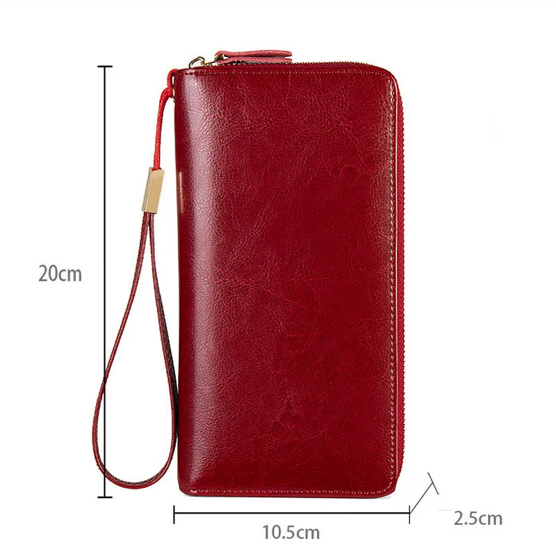 RFID Blocking Women's Wallet Long Zipper Lady Purse Leather Clutch