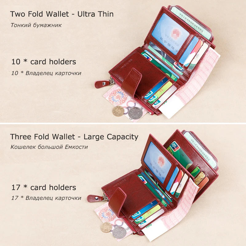 RFID Tri-fold Short Women Wallet with Coin Zipper Pocket