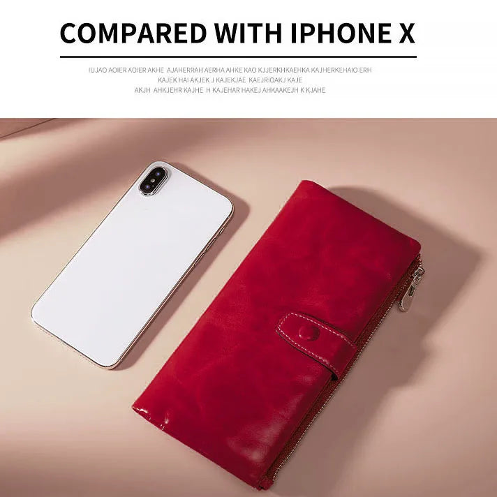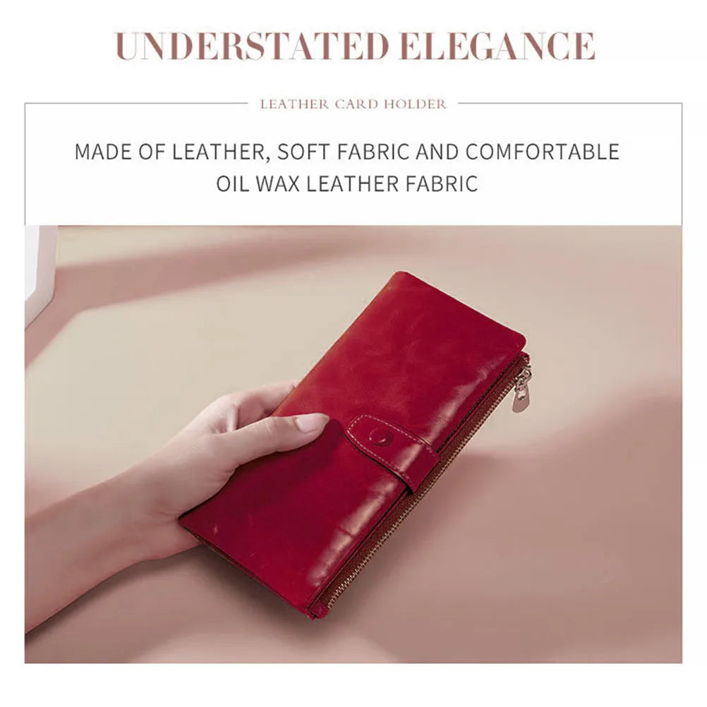 RFID Women Wallet Cowhide Business Long Ladies Wallet Oil Leather Bag